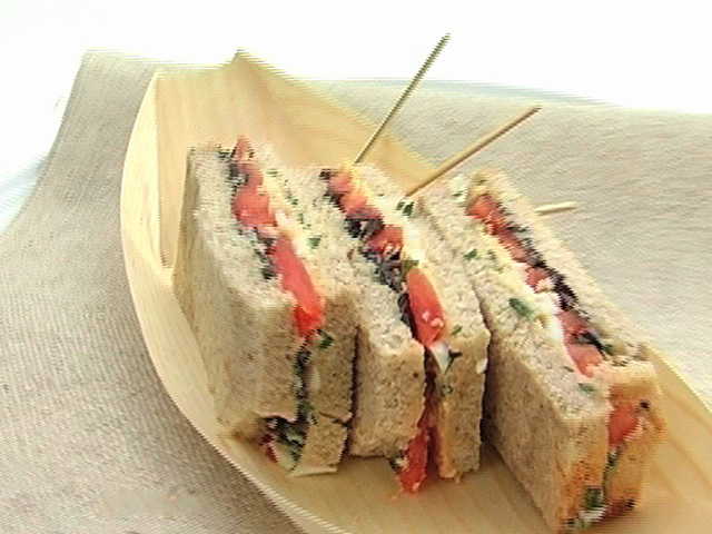 Простой и вкусный сэндвич с базиликом.Состав:яйца — 2 штуки;хлеб — 4 кусочка;масло — 100 гр;оливки — 3 столовых ложки;помидоры — 2 штуки;немного свежего базилика;соль по вкусу.