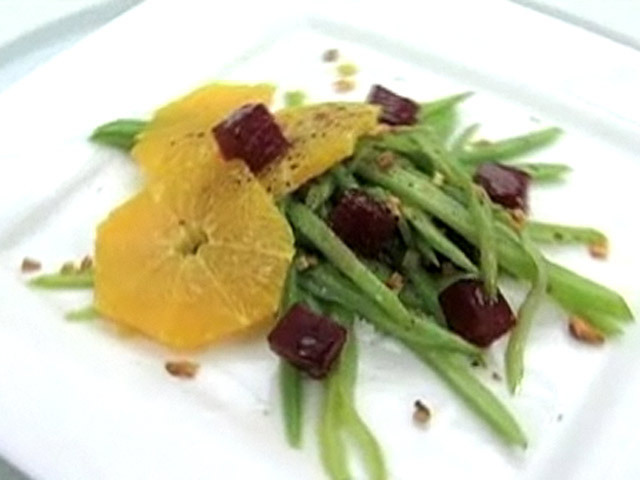 Рецепт приготовления фасоли.Состав:фасоль — 100 гр;апельсин — 1 штука;черный перец, соль, масло, чеснок, имбирь, свекла.
