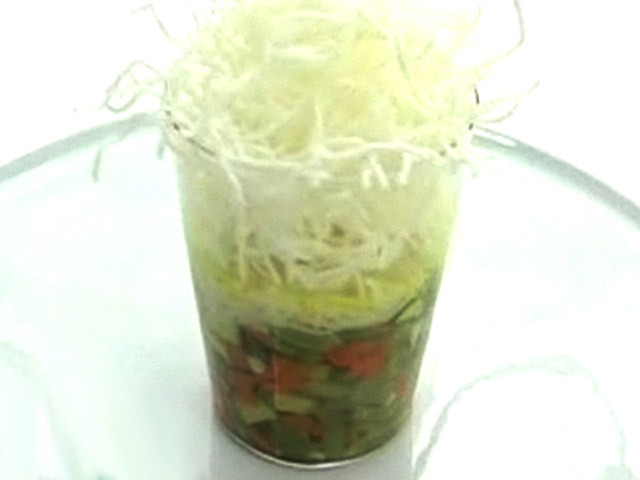 Рецепт супа с лапшой.Состав:сельдерей — 30 гр;фасоль — 70 гр;кабачки — 60 гр;вода — 2 стакана;оливковое масло — 1 столовая ложка;морковь — 1 штука;масло, чеснок, соль, рисовая лапша.